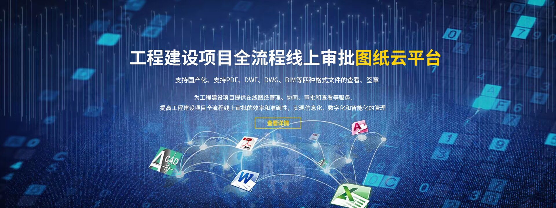 為工程建設項目提供在線圖紙管理、協(xié)同、審批和查看等服務,提高工程建設項目全流程線上審批的效率和準確性,實現(xiàn)信息化、數(shù)字化和智能化的管理。支持PDF、DWF、DWG、BIM等四種格式文件的查看及簽章,支持國產(chǎn)化。